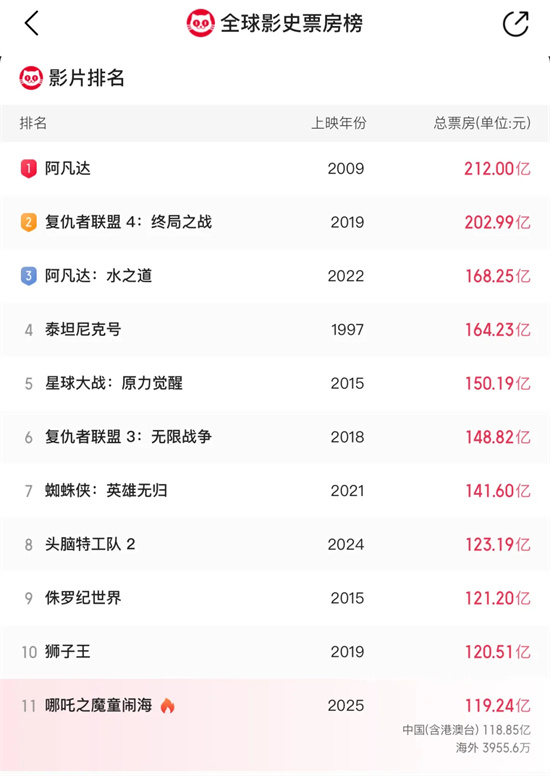 说到具体的电影,那真是几家欢喜几家愁。《哪吒之魔童闹海》这部电影简直就是票房的黑马,它的票房占比超过了59.4%,累计票房已经突破了119亿人民币,这个数字还在不断攀升,甚至有望冲击全球影史票房前10名的位置。想想看,一个中国的故事,能够在全球范围内受到如此热烈的追捧,这是多么值得骄傲的事情啊!