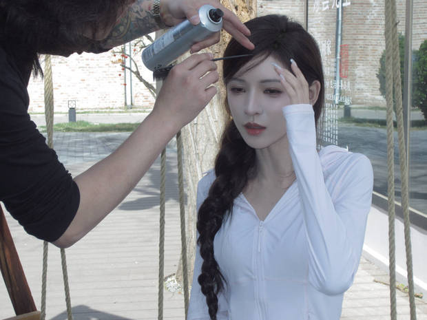 我特别喜欢她穿白色抹胸时展现出来的那种干净气质。不是那种冷冰冰的疏离感,而是带着温度的清新。有几张近景能清楚地看到她皮肤的状态,在自然光下透着健康的光泽,配上淡淡的妆容,把”less is more”这句话诠释得淋漓尽致。